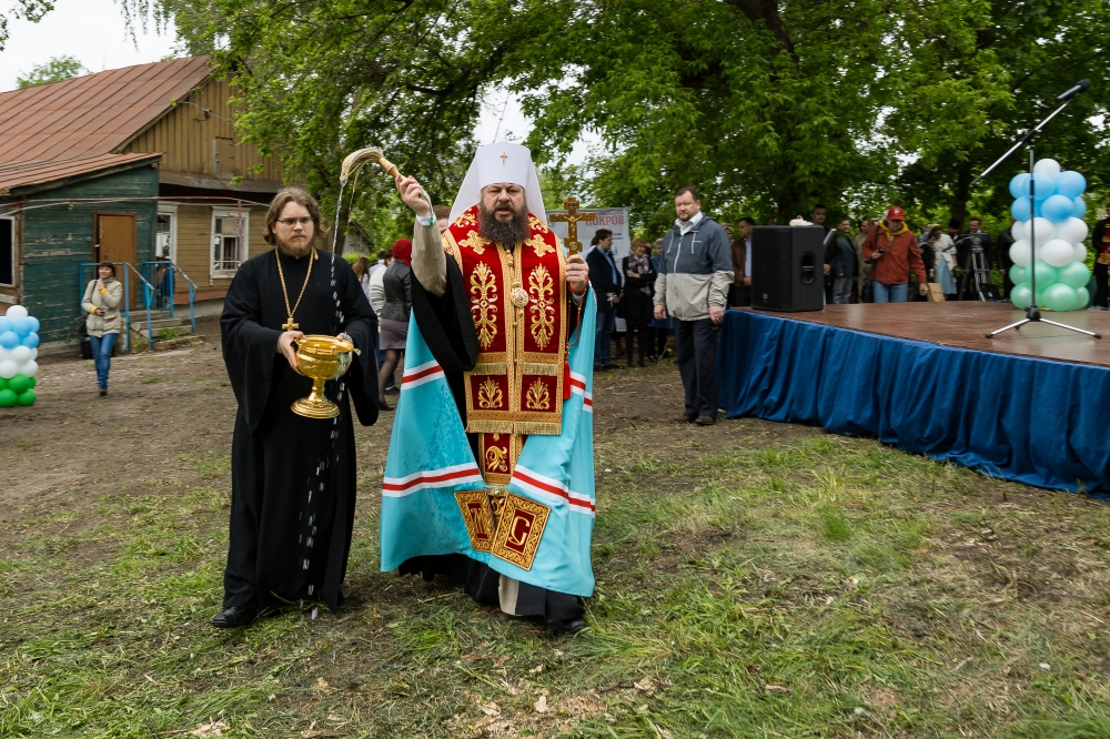 После этого митрополит Серафим совершил молебен и освятил землю, на которой будет построен приют.