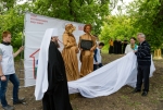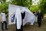 Затем состоялось открытие таблички, на которой обозначено: «Здесь будет построен центр помощи семье и детям благотворительного фонда «Покров» при поддержке Пензенской епархии, правительства Пензенской области и всех неравнодушных жителей Пензы». Ее держали в руках молодые люди, изображающие статуи, накрытые белой тканью. Полотно сняли Анна Кузнецова, Иван Белозерцев и владыка Серафим.