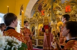 Его Высокопреосвященству сослужили: настоятель Никольской церкви микрорайона Терновка протоиерей Александр Филиппов, иеромонах Сергий (Зайчиков), иереи Михаил Саратян, Антоний Шварев, Сергий Беляков, иеродиакон Дионисий (Матросов), диаконы Сергий Исайчев, Александр Хромов.