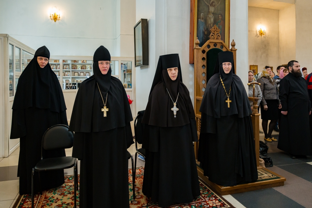 За богослужением молились: настоятельница Нижнеломовского Успенского монастыря игумения Варвара (Трофимова) с сестрами и прихожанами обители, настоятельница Наровчатского Троице-Сканова женского монастыря игумения Тавифа (Бакулина) и настоятельница Троицкого женского монастыря г. Пензы игумения Александра (Макова).
