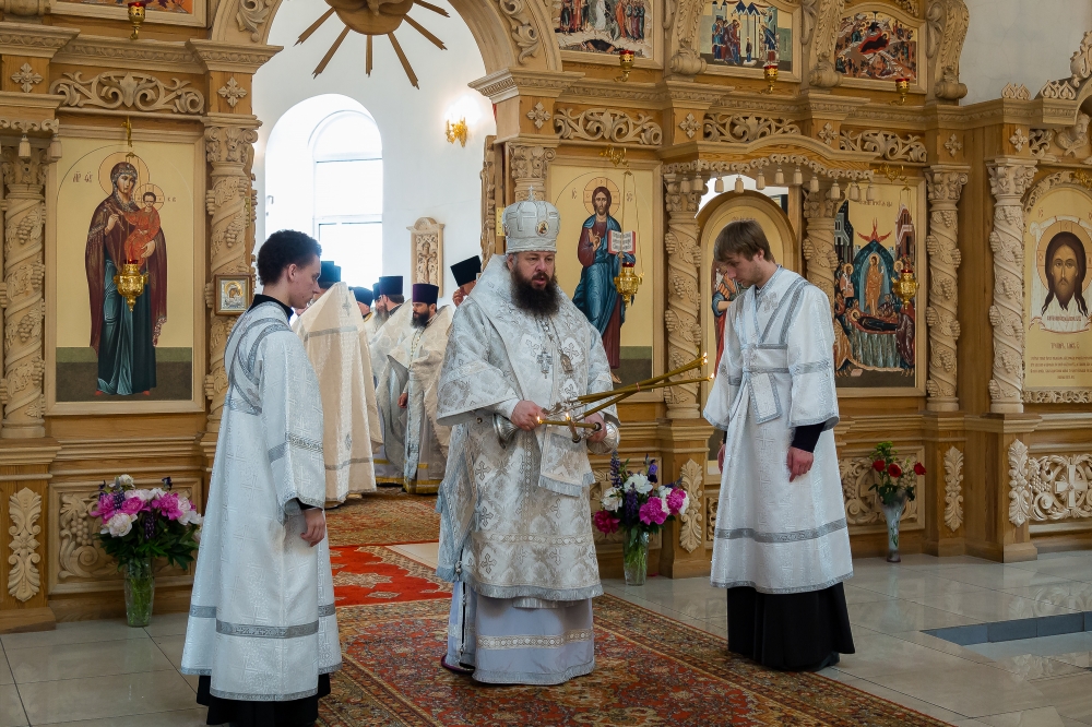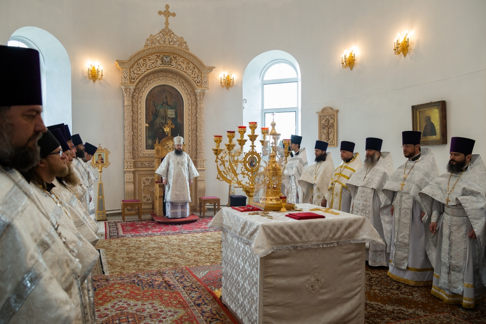 Его Высокопреосвященству сослужили: протоиерей Павел Матюшечкин, настоятель Петропавловского храма г. Пензы, и. о. секретаря Пензенской епархии; протоиерей Иоанн Яворский, настоятель Покровского архиерейского собора г. Пензы, председатель Строительного отдела Пензенской епархии; протоиерей Святослав Рудый, благочинный Спасского городского округа; протоиерей Александр Овцынов, благочинный Никольского городского округа; протоиерей Вадим Петрушков, благочинный Петропавловского городского округа; протоиерей Дионисий Соловьев, благочинный 2-го округа Пензенского района; протоиерей Виталий Ещенко, благочинный Городищенского района; протоиерей Андрей Фадеев, благочинный Шемышейского района; протоиерей Михаил Дергунов, благочинный Мокшанского района; иеромонах Антоний (Умнов), благочинный Нижнеломовского района; иеромонах Сергий (Зайчиков), иерей Даниил Бойков, благочинный Каменского района; иерей Александр Угольков, благочинный Бессоновского района; иеродиакон Дионисий (Матросов), диакон Сергий Исайчев и другие представители духовенства.
