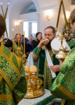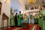 Его Высокопреосвященству сослужили: митрофорный протоиерей Владимир Спицын, клирик Троицкого женского монастыря г. Пензы;