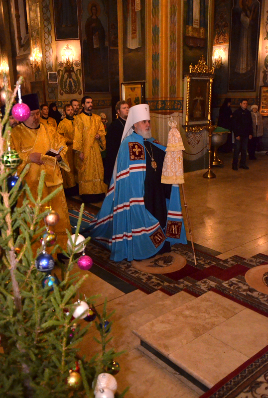 По окончании Божественной литургии Архипастырь сердечно поздравил всех с праздником, а также с наступившим Новым годом и обратился с проповедью: