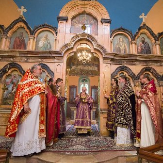 В Свято-Троицком храме подворья Русской духовной миссии в Хевроне иерарх совершил Божественную литургию в сослужении начальника Русской духовной миссии в Иерусалиме архимандрита Александра (Елисова), настоятеля подворья протоиерея Алексия (Елисеева), паломников в священном сане.
