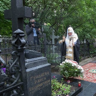 По окончании богослужения в соборе Петропавловской крепости, 12 июля, Святейший Патриарх Кирилл в сопровождении митрополита Санкт-Петербургского и Ладожского Варсонофия посетил Большеохтинское кладбище, где совершил литию на месте погребения своих благочестивых родителей - протоиерея Михаила и Раисы Гундяевых.