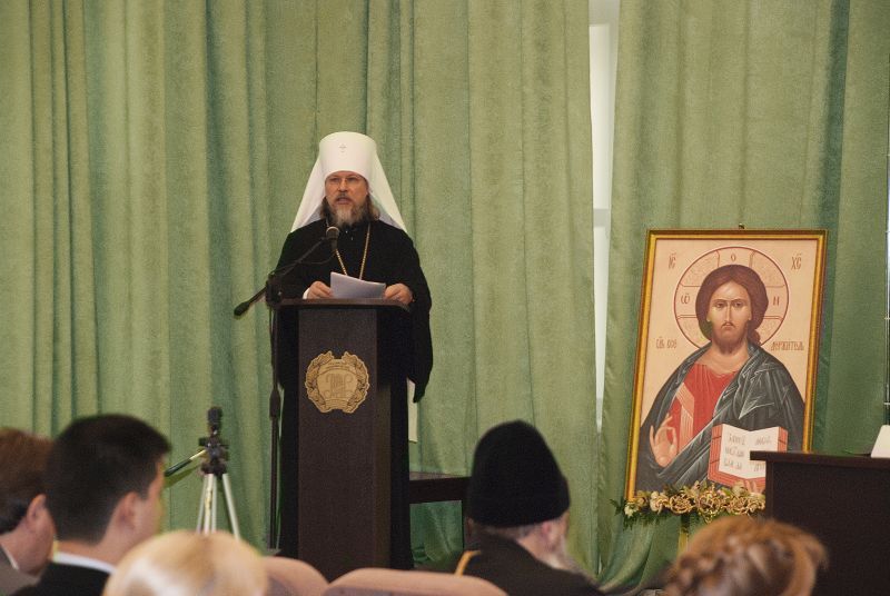 Открыл встречу митрополит Рязанский и Михайловский Марк, после чего было озвучено приветственное слово руководителя вуза - ректора Виктора Гришина.