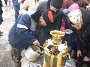 Пока взрослые беседовали в ожидании чая из большого самовара, который раздували казаки, дети быстро соорудили себе горку на снежной насыпи поблизости. Оттуда они с залихватским визгом скатывались вниз под бодрящие звуки казачьих песен. А потом, по уже сложившейся здесь традиции, все дружно участвовали в игре по станциям, которые были представлены как мастер-классы по разным направлениям, таким как оригами, силовое троеборье, стрельба из арбалета и многие другие интересные направления спорта и творчества.