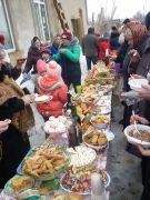 В Архангельском храме любят праздничные встречи, наполненные общением, радушием и добротой человеческих сердец. Вот и сегодня после Божественной литургии прихожане храма и многие другие жители Михайлова, к которым присоединились и горожане из областного центра, собрались возле храма, на небольшом дворике, который многим гостям уже успел полюбиться за время тех светлых и радостных праздников и веселых гуляний, которые здесь проводились неоднократно.