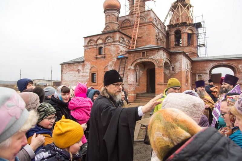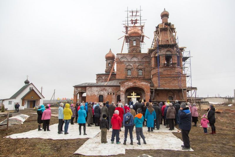 Возведение храма в селе идет уже несколько лет. Семь лет назад было освящено место под строительство Дома Божия. В селе проживает более двух тысяч человек, приход большой. Сейчас верующие собираются на богослужения в молельном доме, там же занимаются ребята из воскресной школы.
