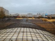 Некоторое время лиса ходила по будущим сводам нижнего храма, ничуть не смущаясь присутствия людей. Даже умудрилась прилечь на крыше и немного полежать на ней. Потом она спустилась и убежала.