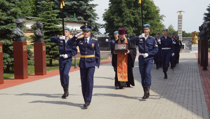 «Недавно, в память об отличном выступлении курсантов на параде, в честь дня Великой Победы на Красной площади в Москве я подарил вам икону Георгия Победоносца. Так началась новая добрая традиция, – сказал Николай Любимов.– Очень важно, что она продолжается. В храме Георгия Победоносца, который строится на территории, будут храниться мощи великомученика. Реликвия станет символом небесного покровительства десантным войскам».