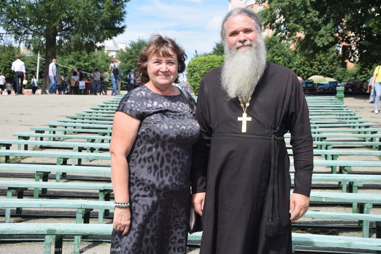 Собравшихся также поздравил председатель Центра охраны материнства и детства «Право на жизнь» протоиерей Виталий Рыбаков. Батюшка выразил надежду, что рязанские семьи будут укрепляться, что все больше детского смеха будет звучать на их родной земле. А молодоженам отец Виталий напомнил, что еще в Раю семью благословил Бог, и поэтому надо всегда искать Его благословения в жизни.