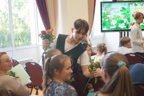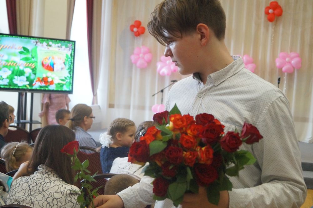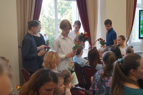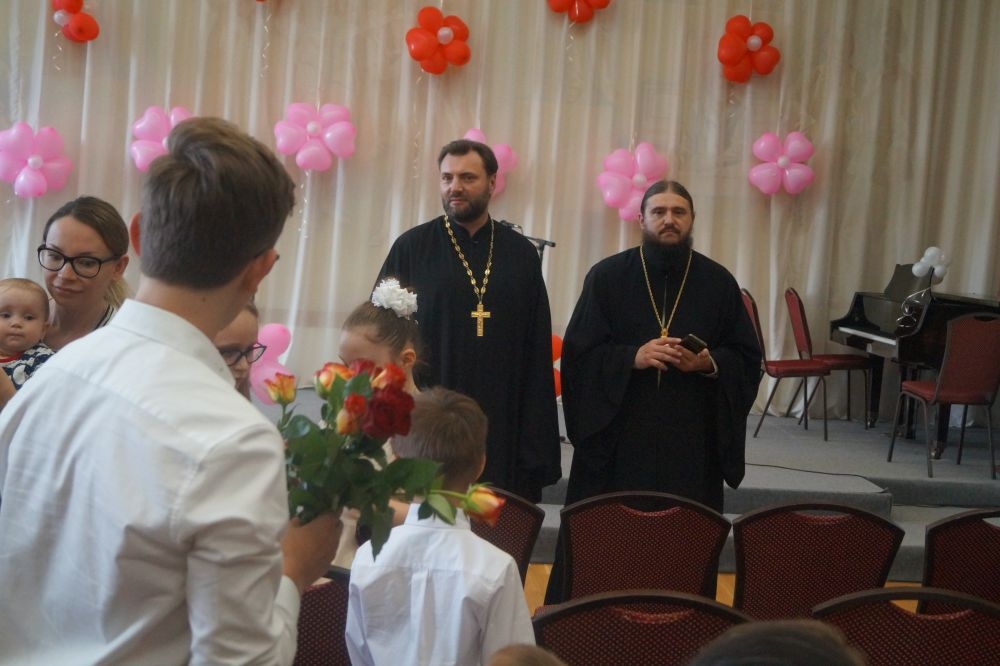 В завершение концерта всех поздравил с праздником директор гимназии протоиерей Георгий Чернышов, после чего представительницам прекрасной половины, присутствовавшим в зале, подарили по розе.