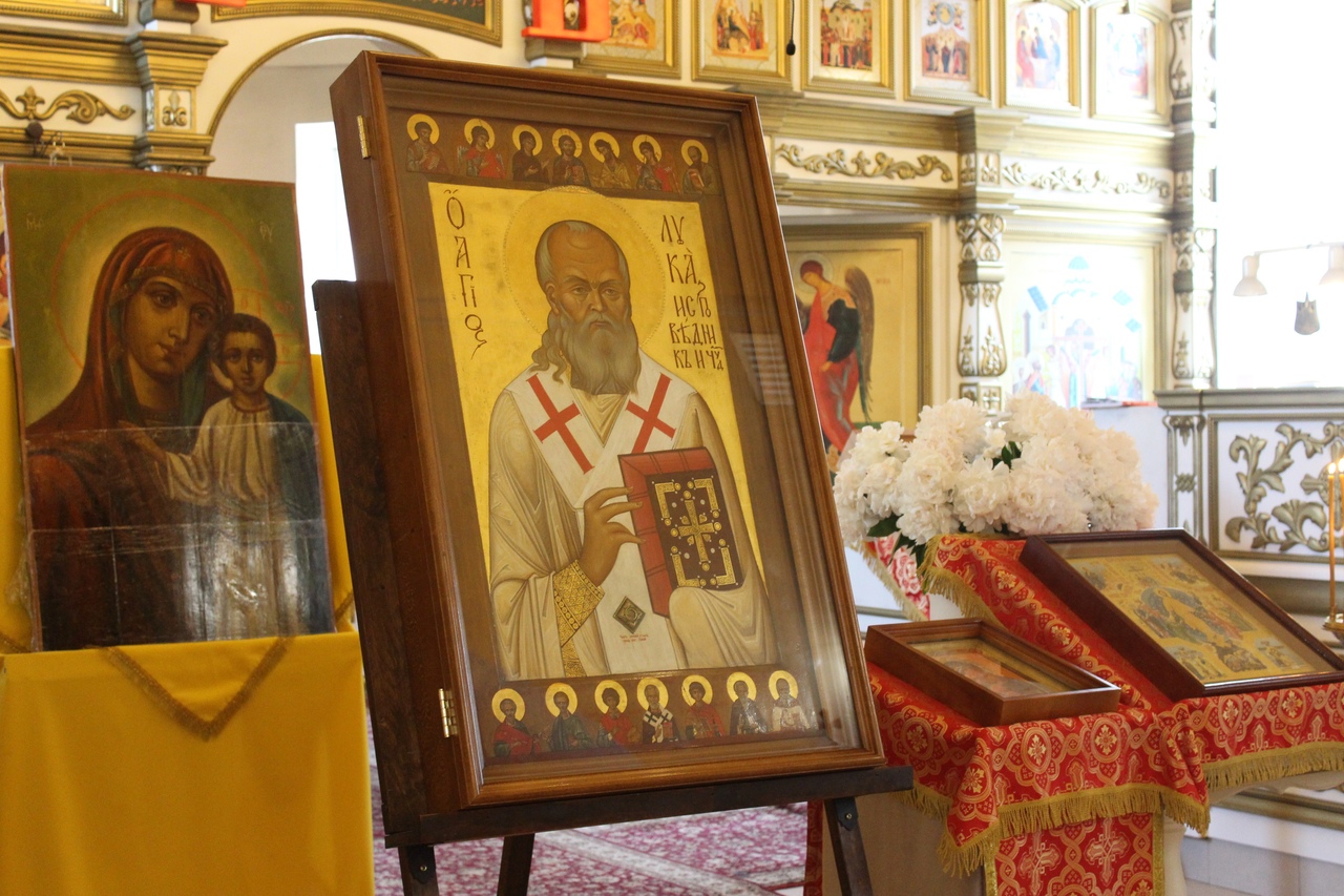 2 июня клир и прихожане Крестовоздвиженского храма благоговейно встретили святыню, после чего с молебным пением крестным ходом обнесли ее вокруг всего церковного комплекса. Затем икону святителя Луки торжественно внесли в храм, отслужили водосвятный молебен с акафистом.