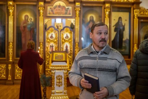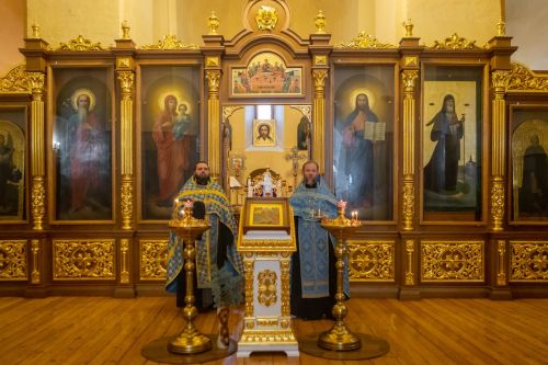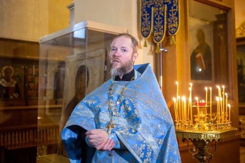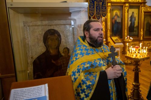 Перед молебном ко всем собравшимся обратился иерей Вячеслав Зотов, директор епархиального музея «Древлехранилище». Батюшка рассказал об истории обретения Феодотьевской иконы, о чудесах и исцелениях, явленных Господом через эту древнюю святыню.