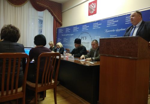 Целью круглого стола, организованного при поддержке региональных министерств, было обсуждение вопросов сотрудничества различных организаций и учреждений в сфере культуры и образования, роли высшего образования в развитии социокультурной среды региона. Такое взаимодействие, объединение всех неравнодушных людей и сил является насущной необходимостью в свете тех угроз, которыми, к сожалению, изобилует современная жизнь общества. Как сказал ректор РГУ Андрей Минаев, среди таких угроз – экстремизм, межнациональная и межконфессиональная вражда.