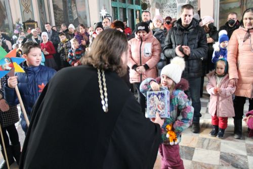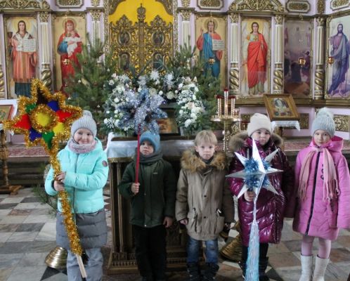 Во-первых, хор Преображенского храма под руководством регента Людмилы Гладковой поздравлял прихожан со Святками и пел рождественские колядки.