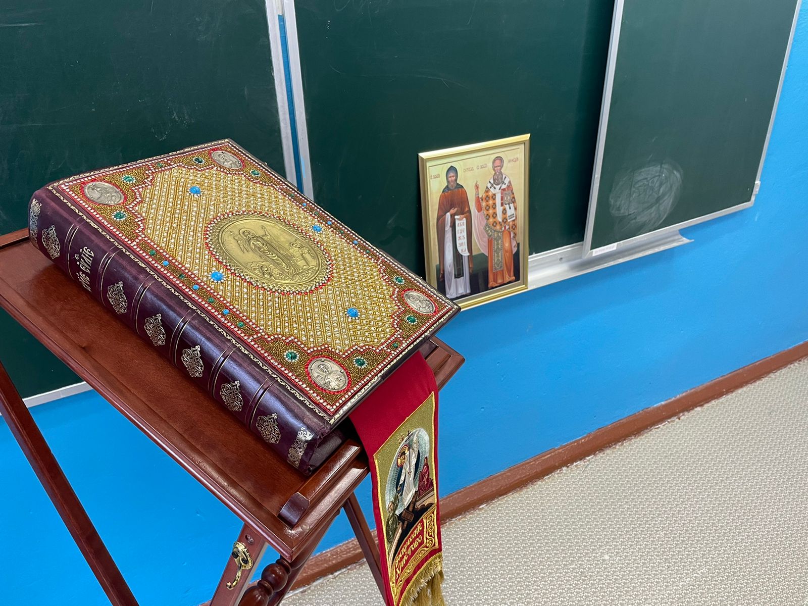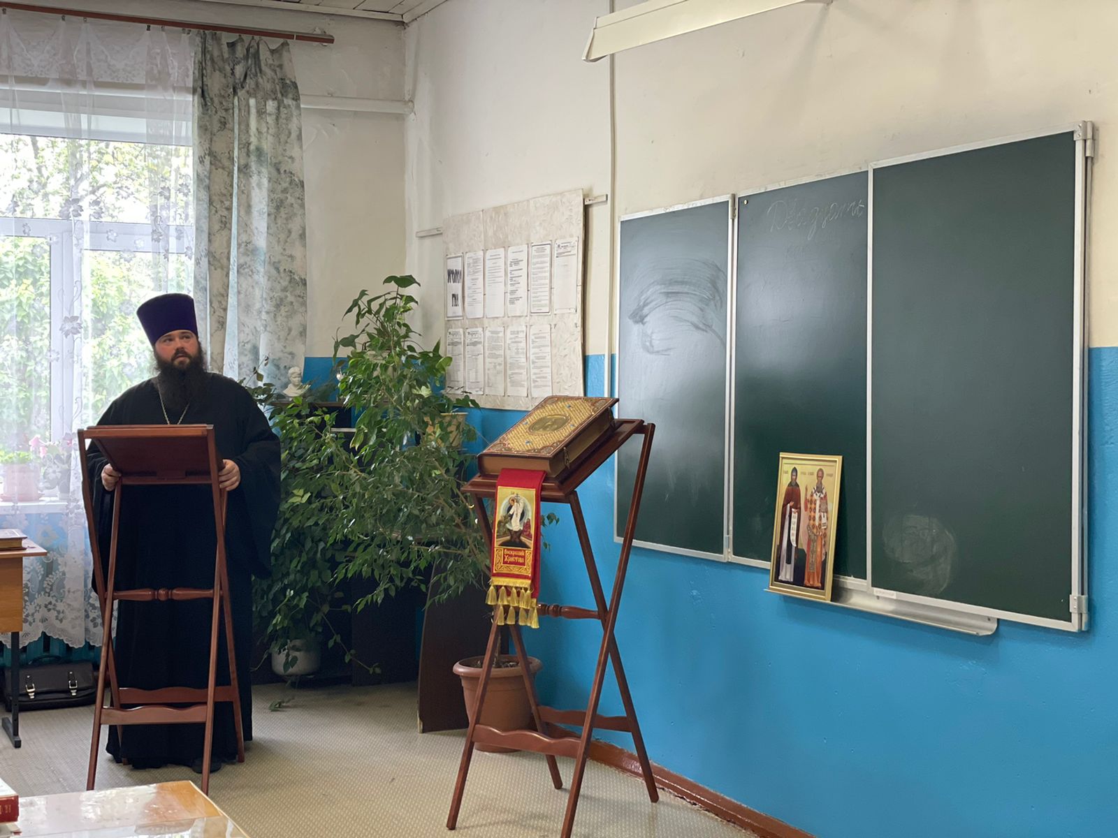Батюшка, в свою очередь, рассказал о славянской азбуке, о переводе книг Священного Писания и о важности изучения Писания, в том числе, для формирования высокого уровня образования и культуры человека. В повествовании отца Павла была затронута тема исторической значимости славянского языка, отношения к родному языку и культуре речи.