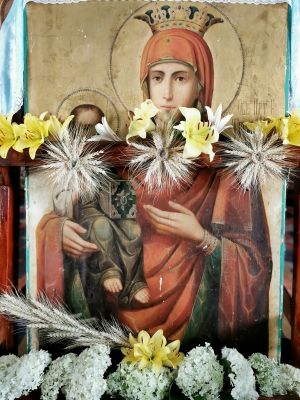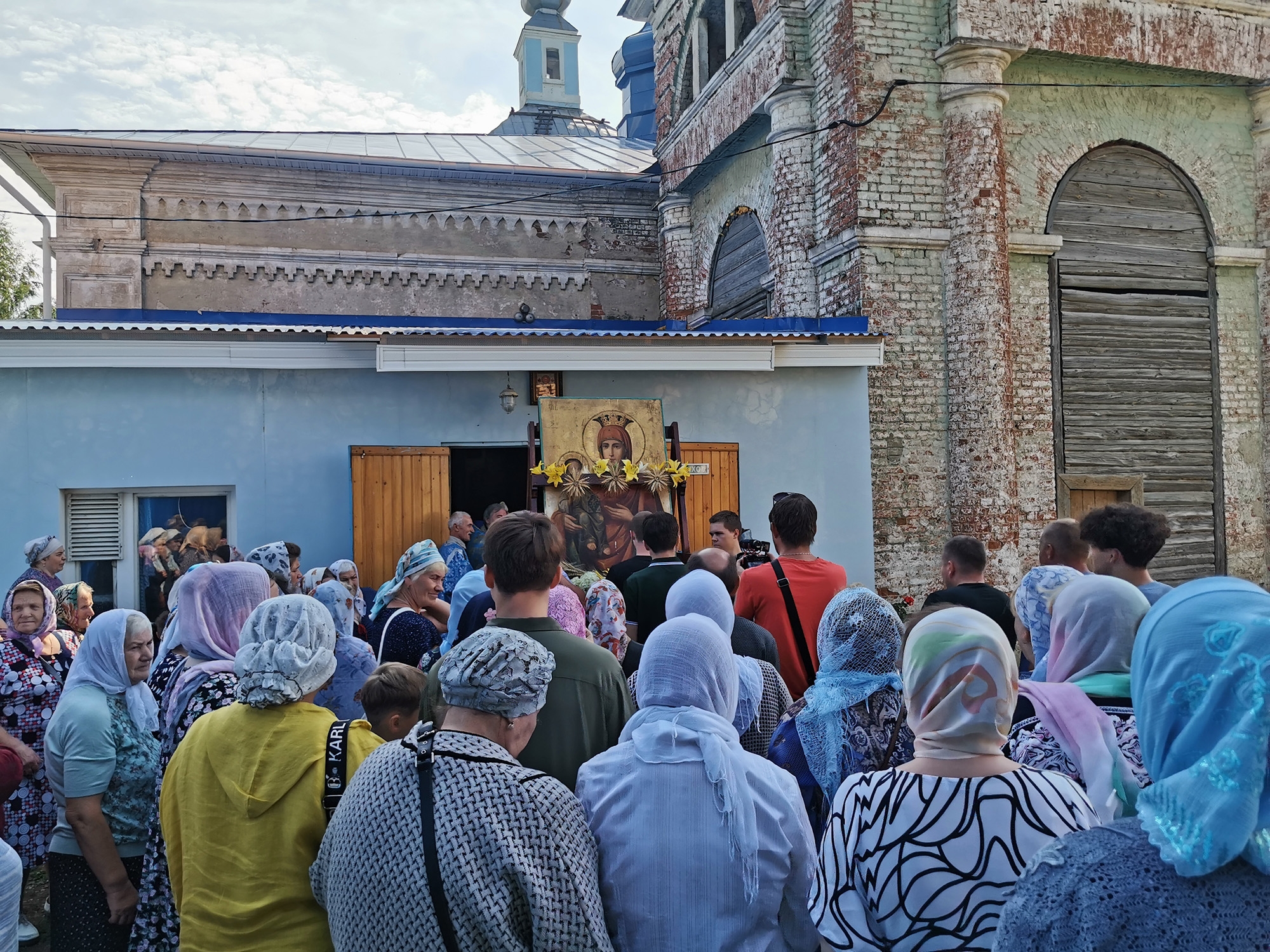 После крестного хода все участники праздника прошли под чудотворным образом «Троеручица», что тоже является местной традицией.