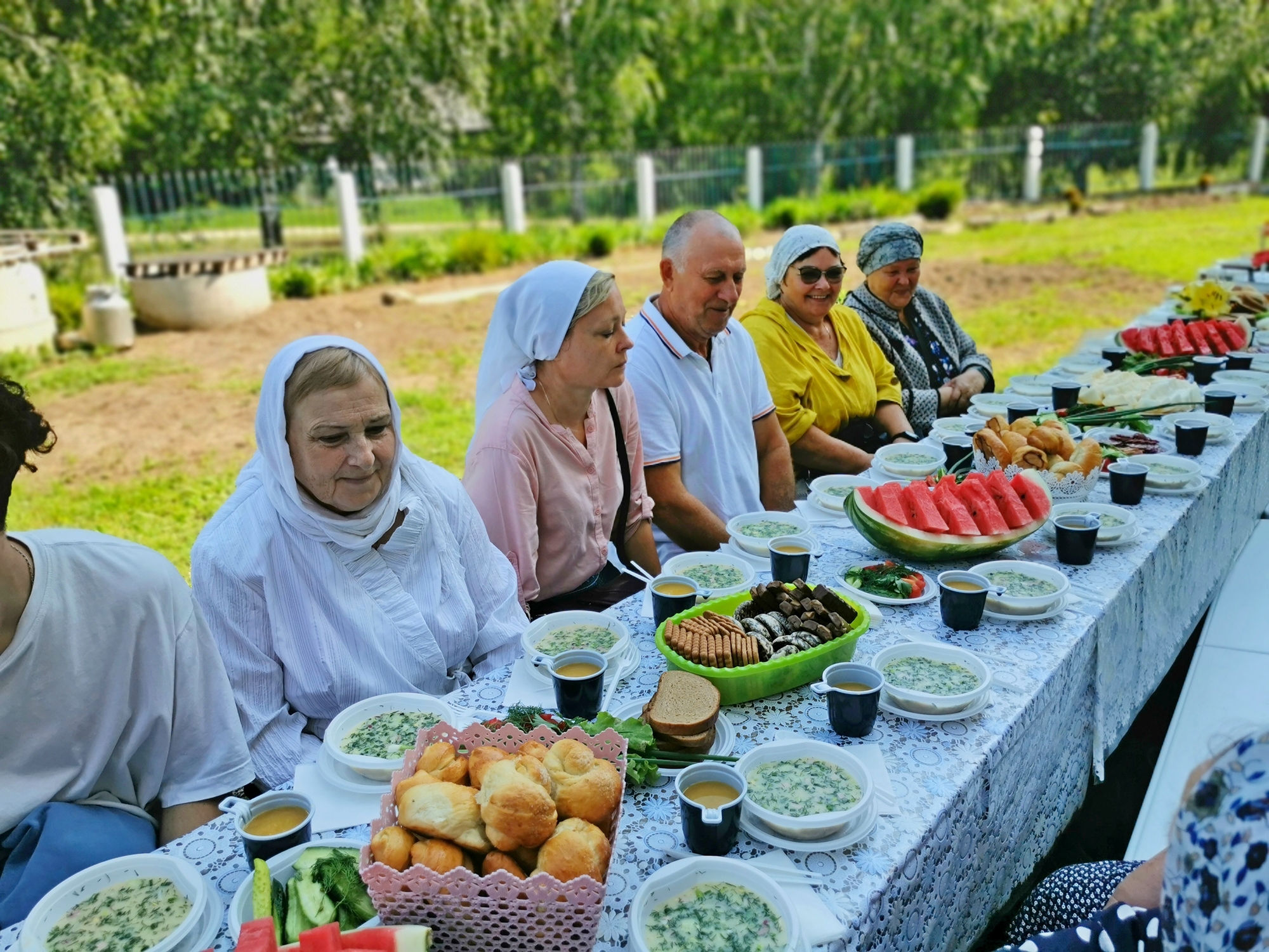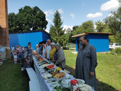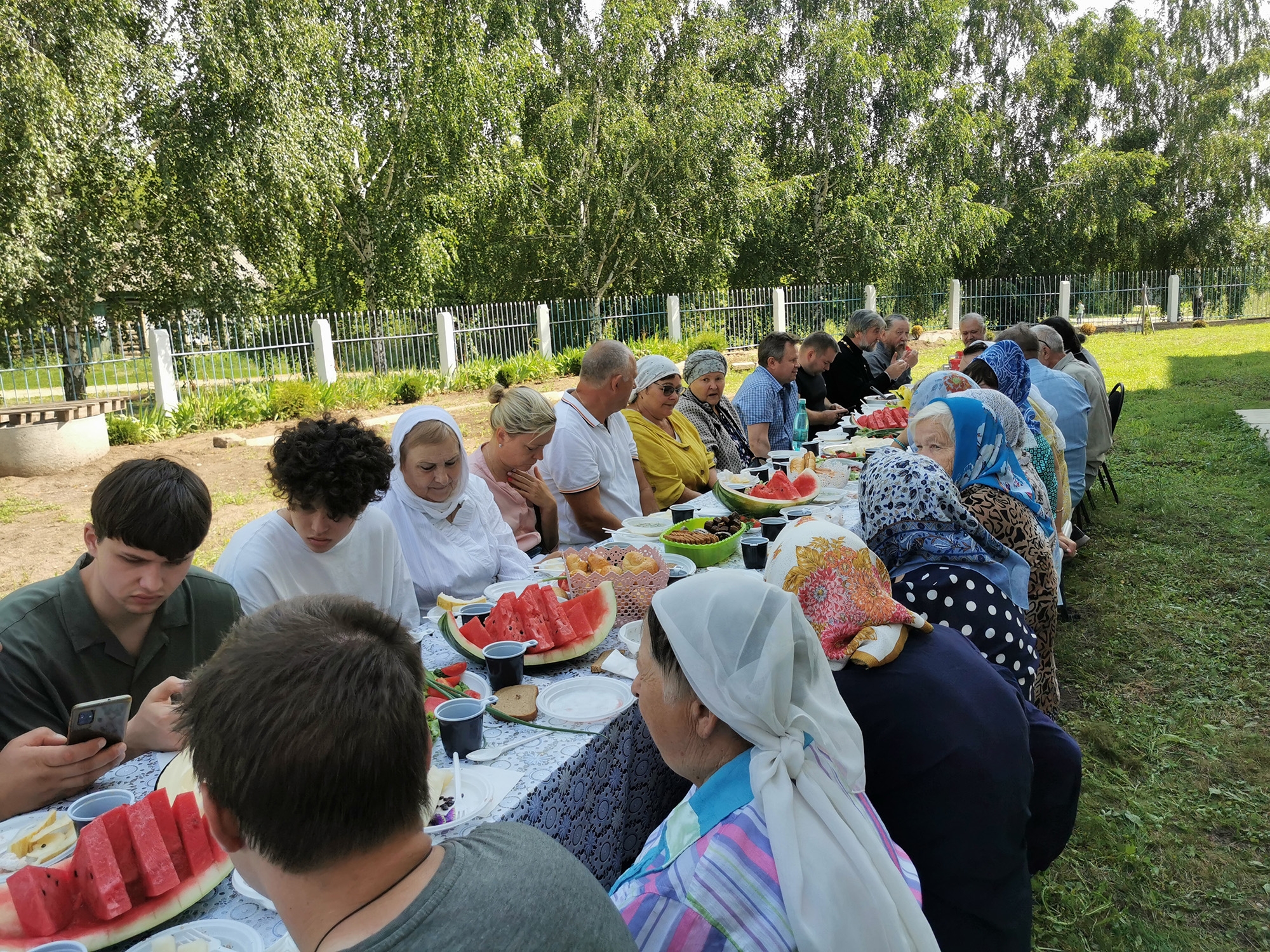 Детям по случаю праздника были вручены шоколадки, но и взрослые тоже не были оставлены без внимания: всех ожидала хлебосольная трапеза. Большой стол был накрыт возле стен храма. Погода позволила ощутить полноту события в дружном коллективе близких по духу людей.
