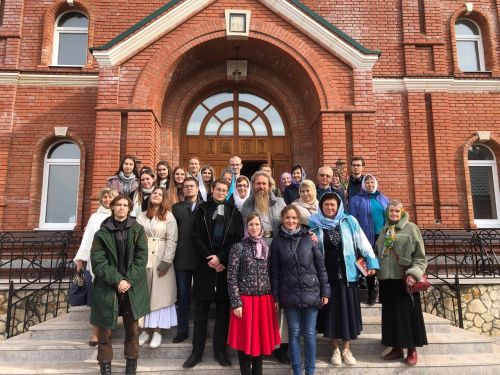 Студенты-теологи, члены отряда «Теограм» на встрече тоже присутствовали. Все паломники стали участниками богослужения и затем – трапезы. Своих гостей отец Лука не отпустил без подарков – всем вручил книги на темы, связанные с богословием.