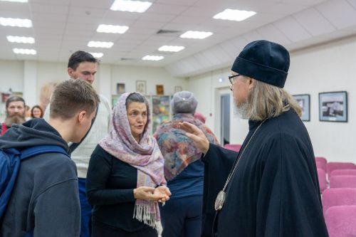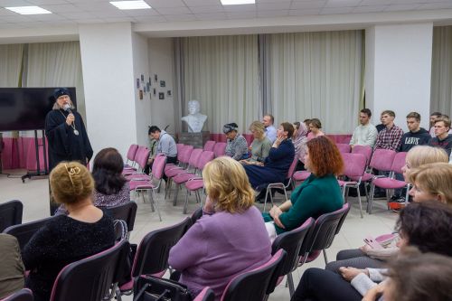 На встрече присутствовали библиотекари, члены межвузовского отряда «Теограм» и другие студенты, прихожане храмов города. Выступление владыки главным образом было посвящено Евангелию от Иоанна, его сравнению с синоптическими Евангелиями, пониманию благовестия и его толкованию.