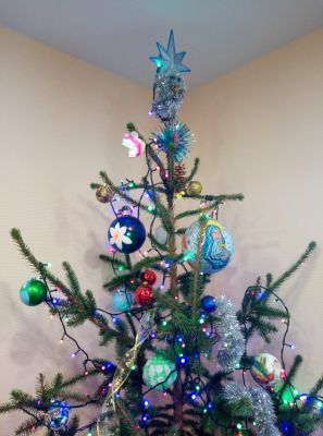 Теперь все поделки заняли свои места на еловых ветвях, а до окончания святочных дней все участники конкурса получат сладкие гостинцы.