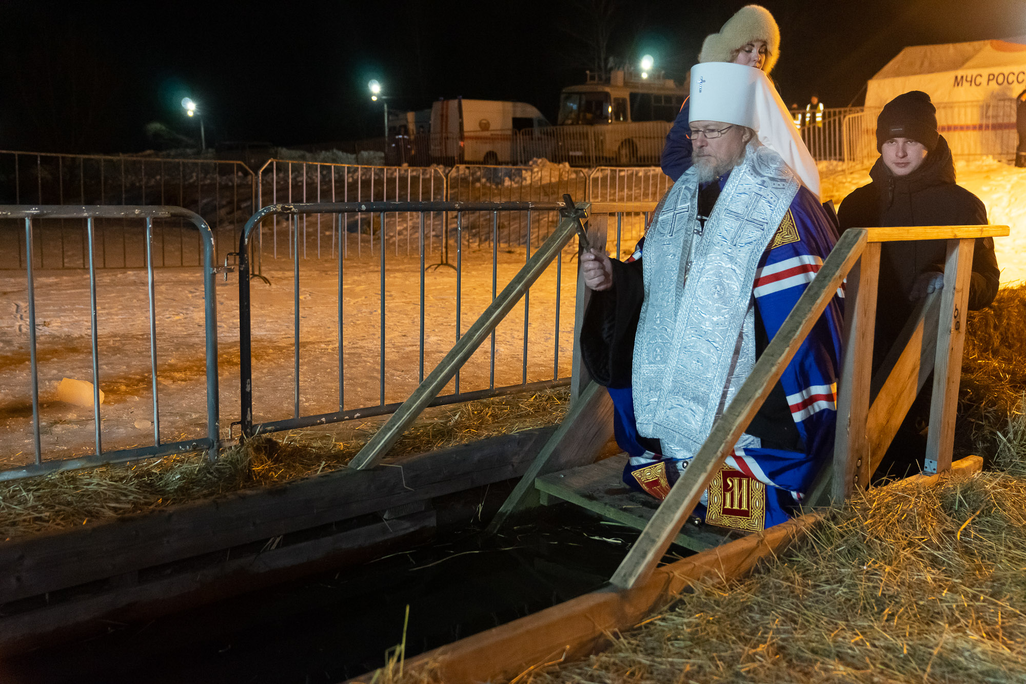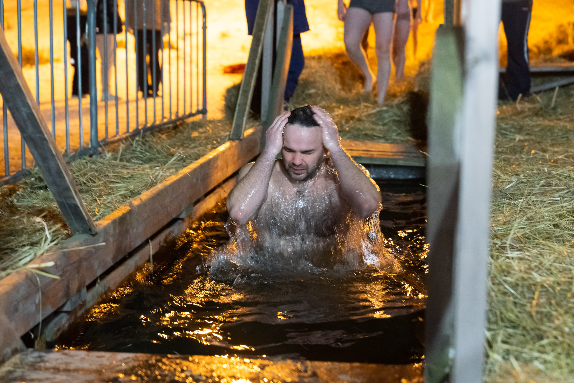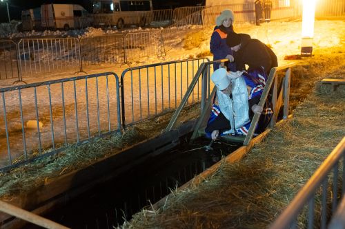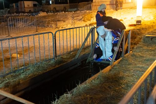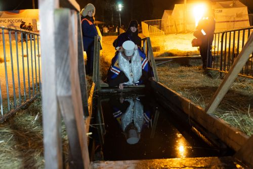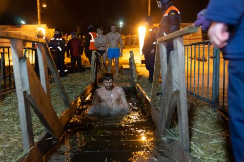 Затем все желающие поддержали благочестивую народную традицию и погрузились в иордань на озере. Для удобства людей на водоеме были оборудованы деревянные сходни, а на берегу установлены отапливаемые палатки для переодевания. Безопасность рязанцев обеспечивали представители МЧС, правоохранительных органов и скорой помощи, около иордани дежурили волонтеры и дружинники.