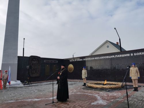Клирик Рязанской епархии выступил на митинге по случаю 80-летия победы в Сталинградской битве