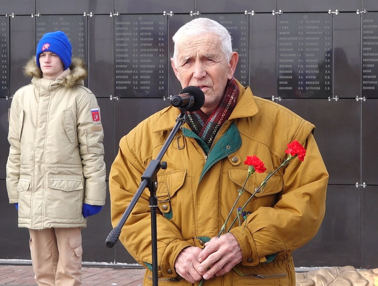 Песня «Горячий снег» в исполнении Александра Каменщикова позволила участникам митинга отмотать плёнку жизни на 80-лет назад.