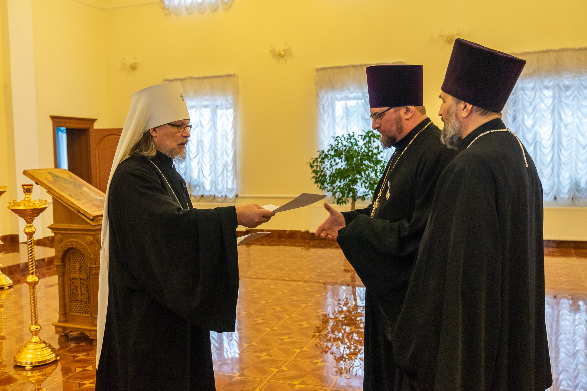 Слушателям курсов повышения квалификации для священнослужителей вручены удостоверения об окончании обучения – документы получили 20 клириков Рязанской епархии. Торжественное событие прошло 6 февраля в здании Епархиального управления.