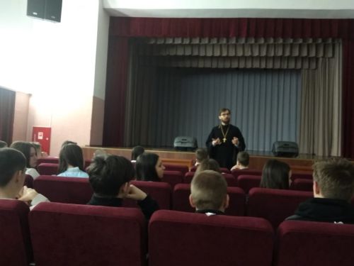 В гости к ребятам приехал председатель молодежного отдела Рязанской епархии священник Павел Коньков. Опыт встречи учеников сразу нескольких образовательных учреждений района с батюшкой уже имел место в прошлом и вызвал положительный отклик как среди молодежи, так и среди педагогов.