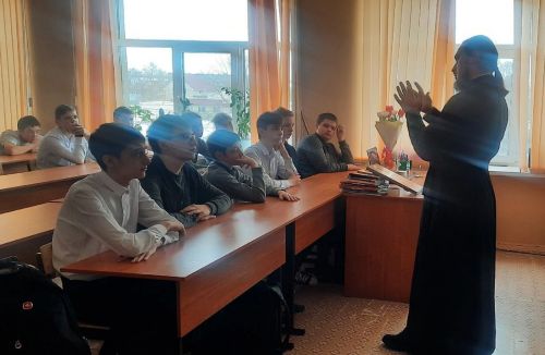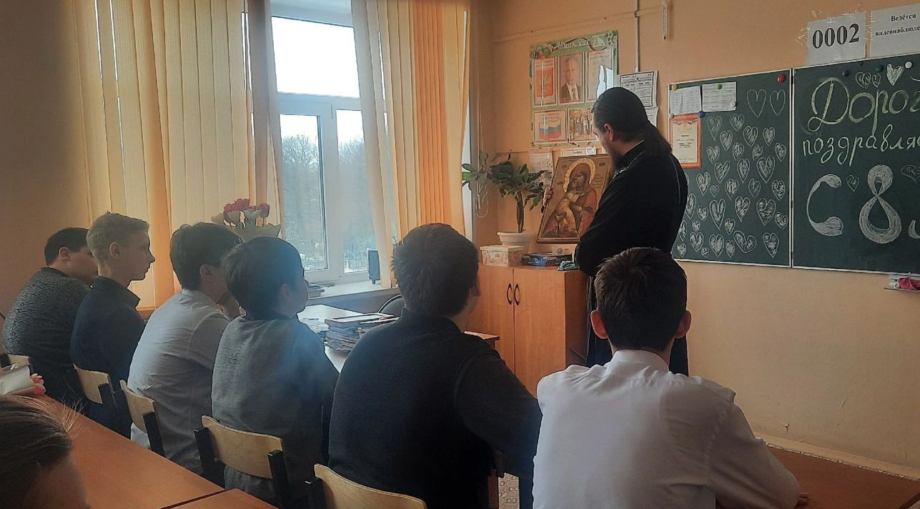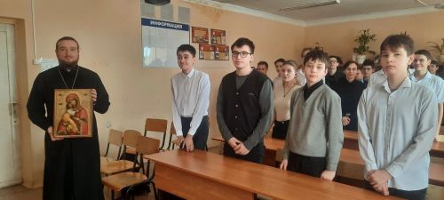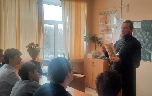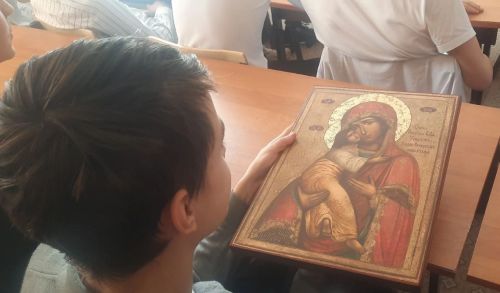 Чтобы сделать свой рассказ более наглядным, отец Александр принес на занятие иконы. Ребята с интересом внимали повествованию, многие открыли для себя совершенно новые грани знаний по истории, в том числе, по церковной, а также по культуре и искусству.