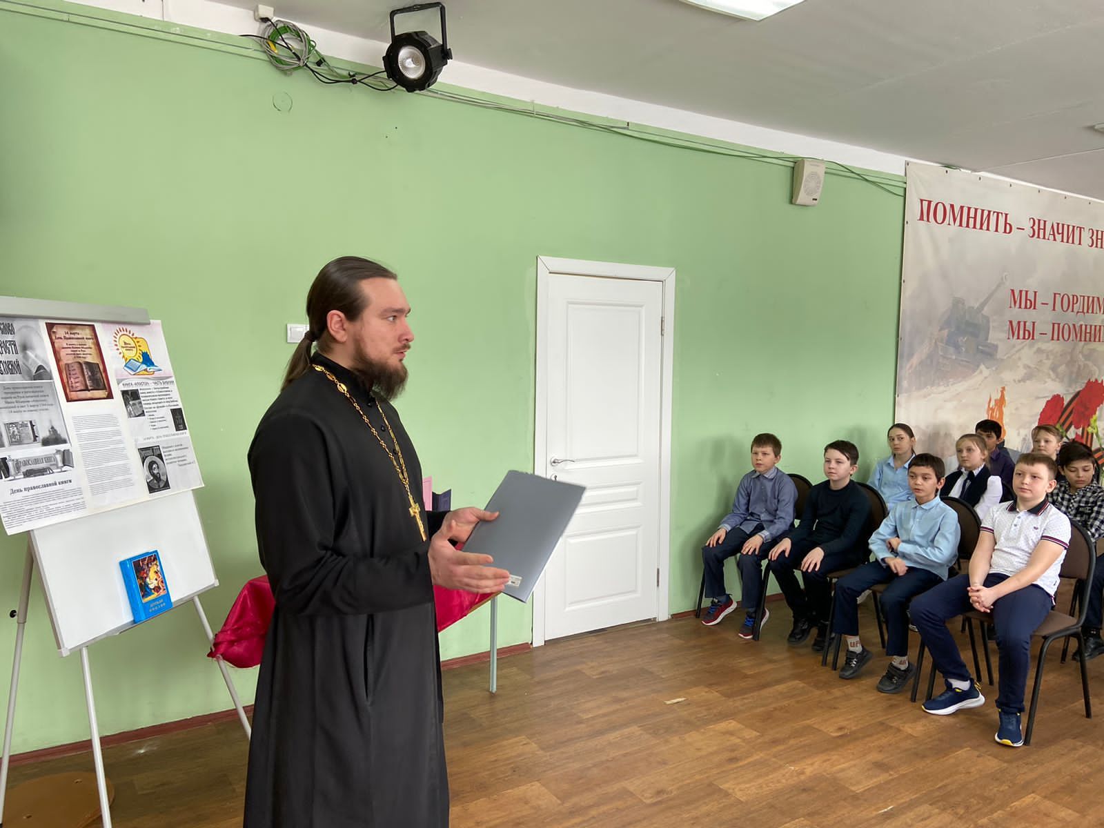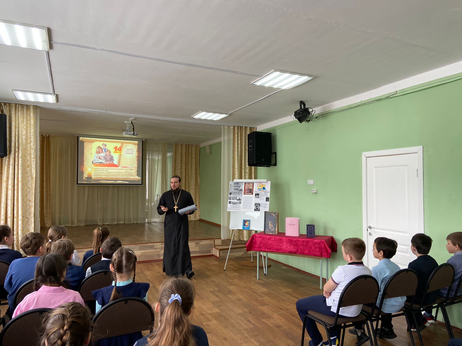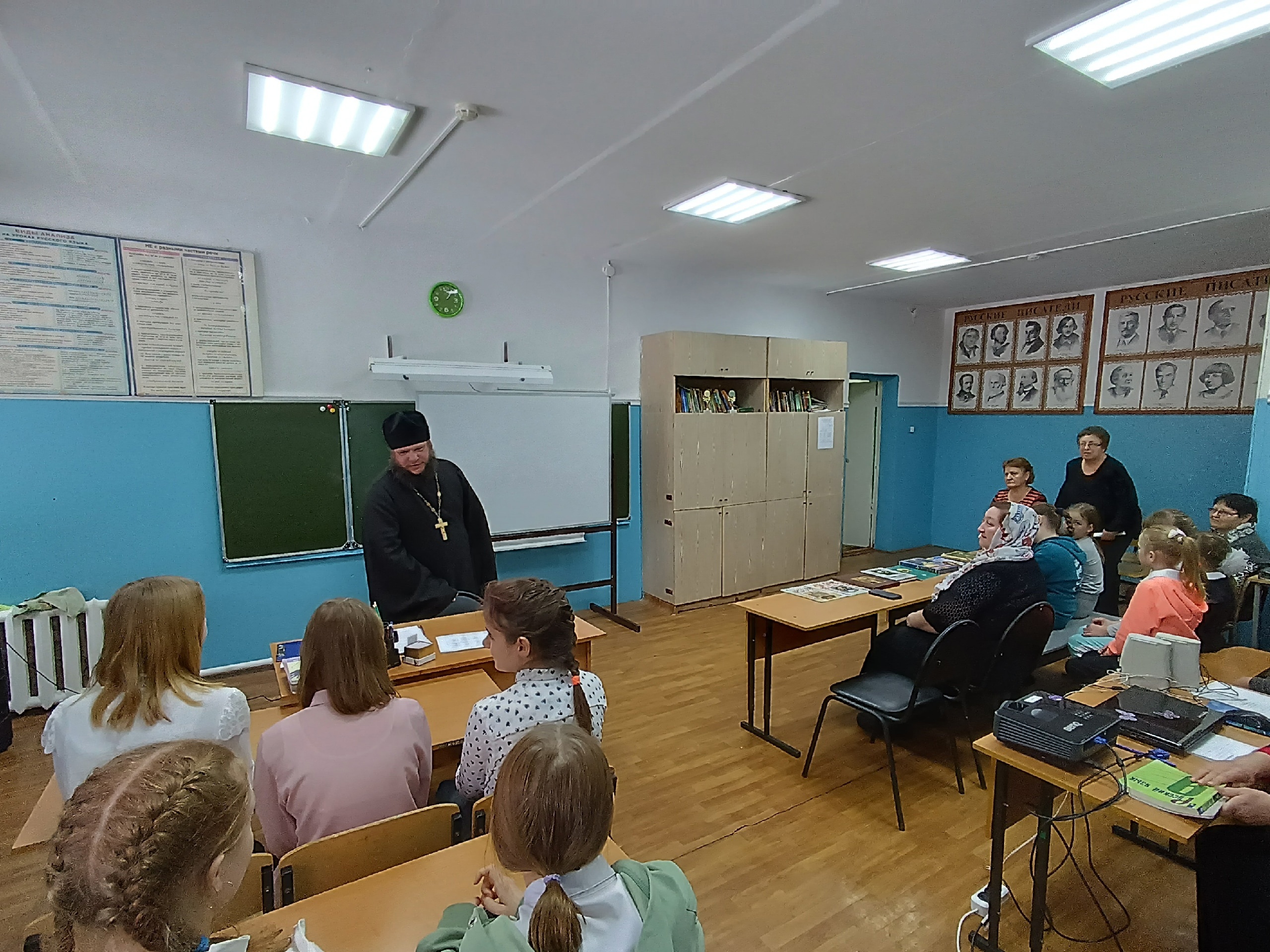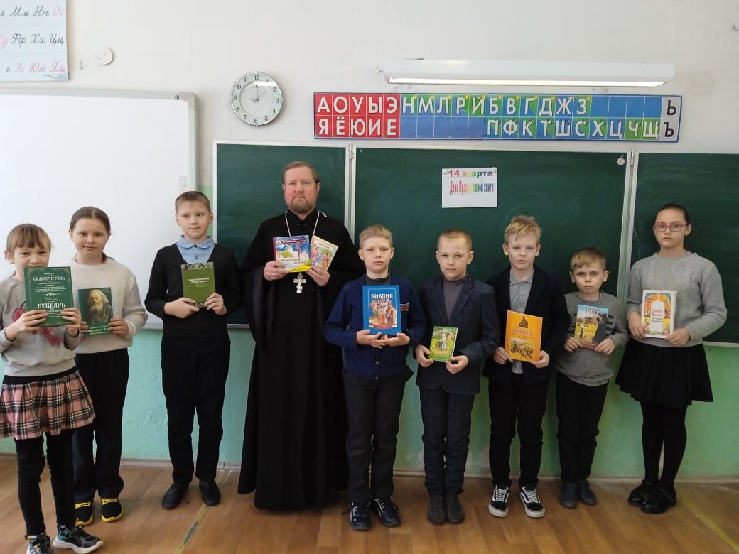 В этот же день благочинный Михайловского второго округа, настоятель Никольского храма в Пушкарях протоиерей Сергий Зенкин посетил школу в селе, и вместе с учителями провел занятие, посвященное Дню православной книги.