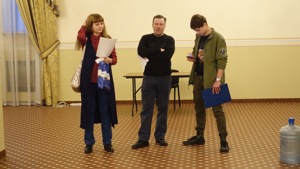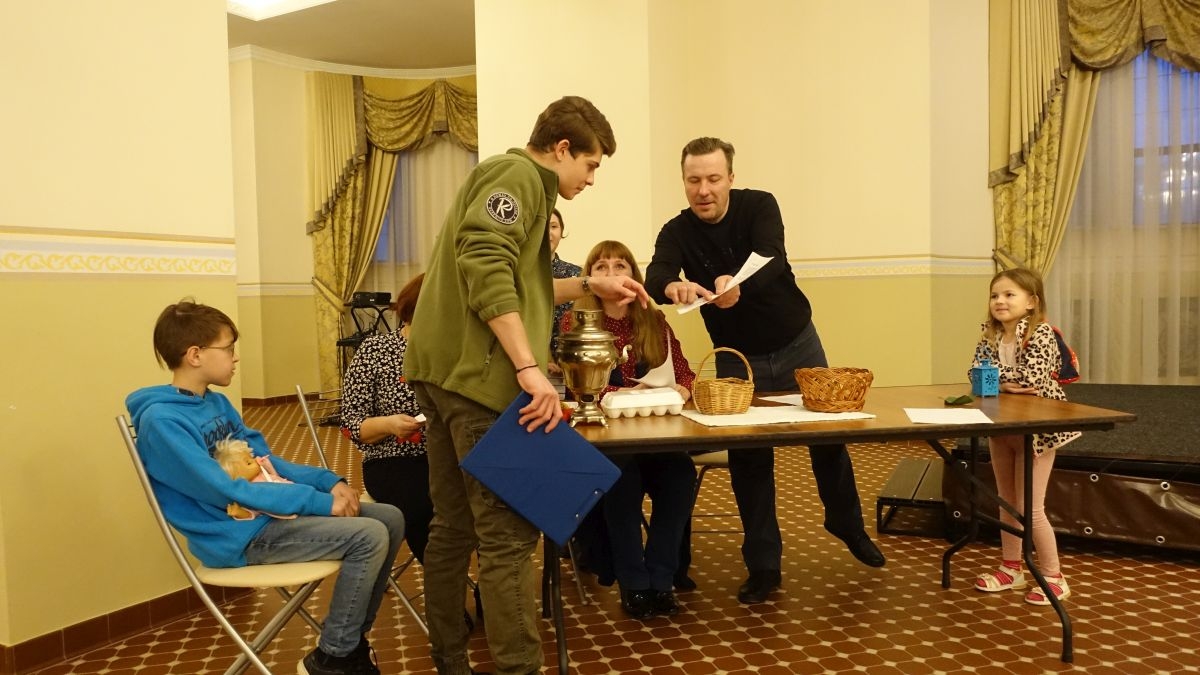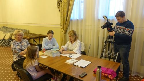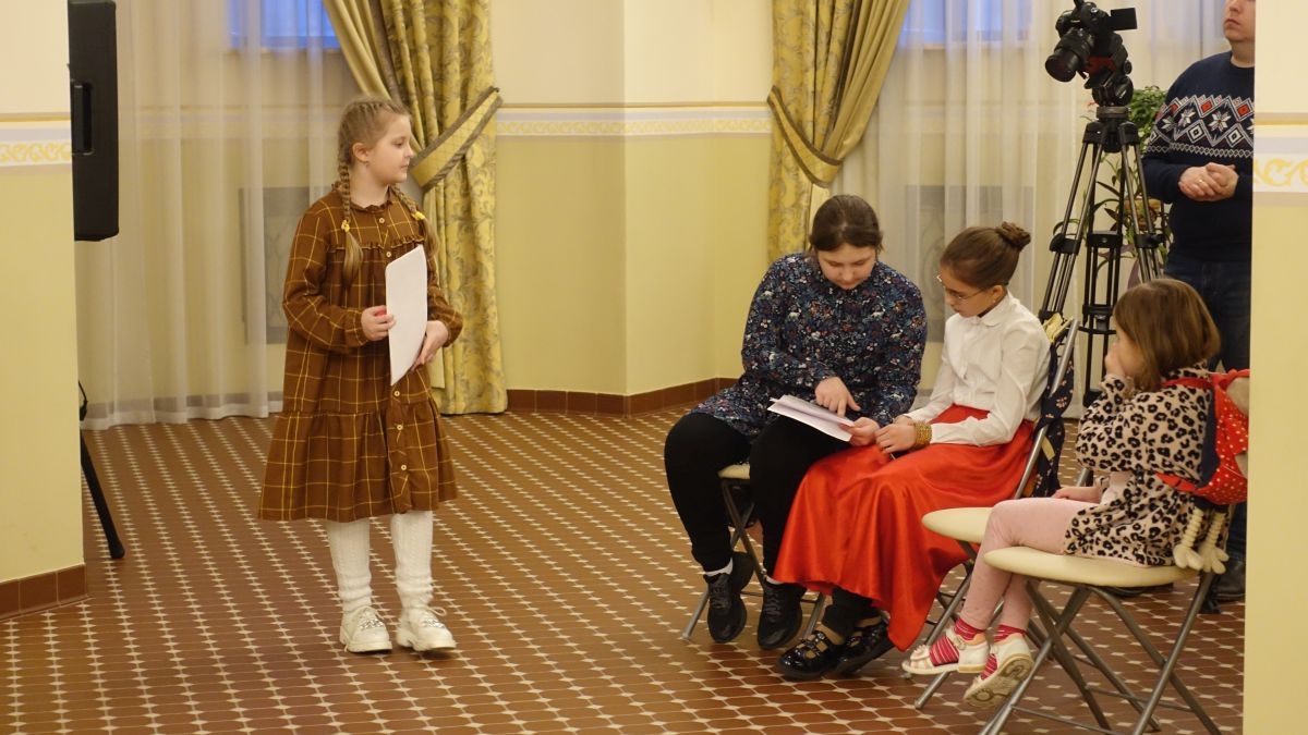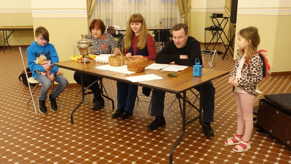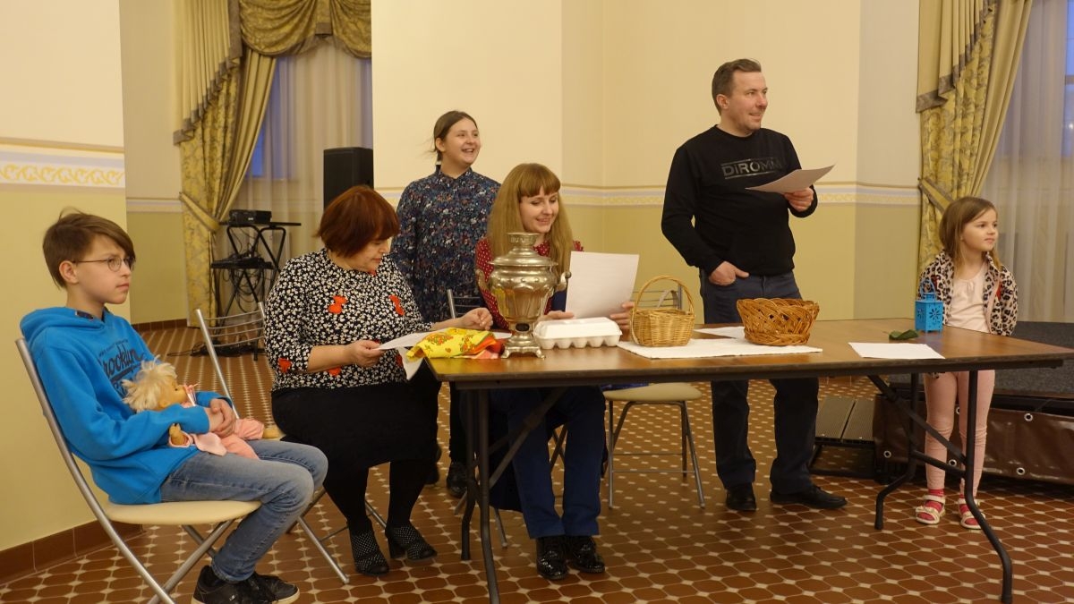 Продолжилась встреча также живым исполнением и чтением строк, но уже из сценария: в просторном праздничном зале храма состоялась репетиция спектакля, который зрители увидят после встречи праздника Пасхи.