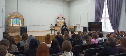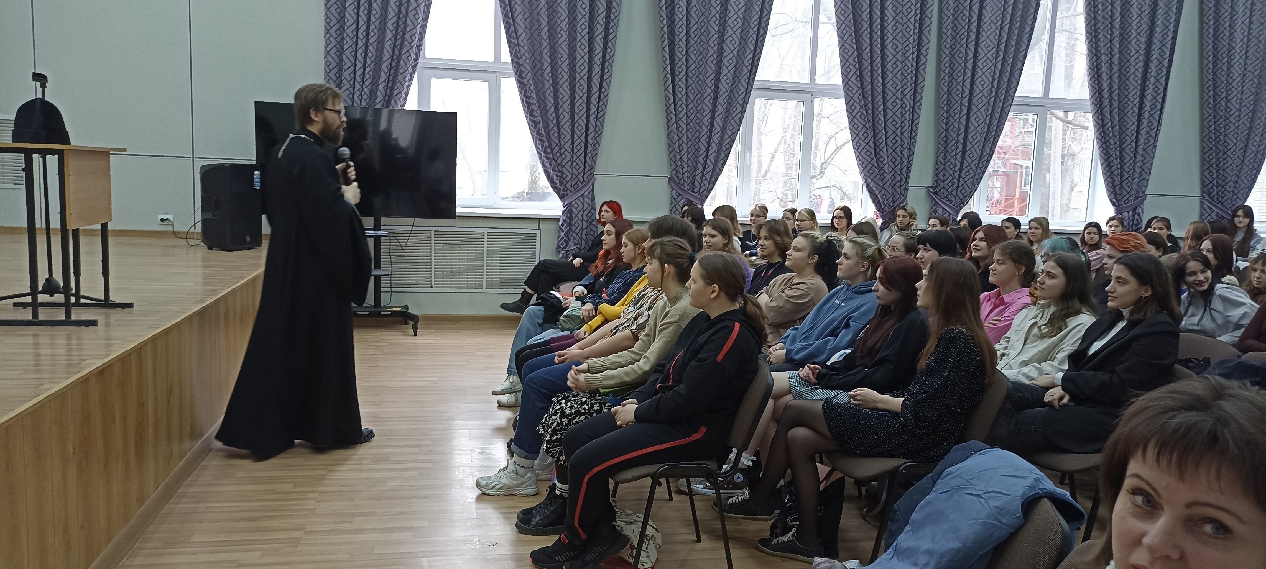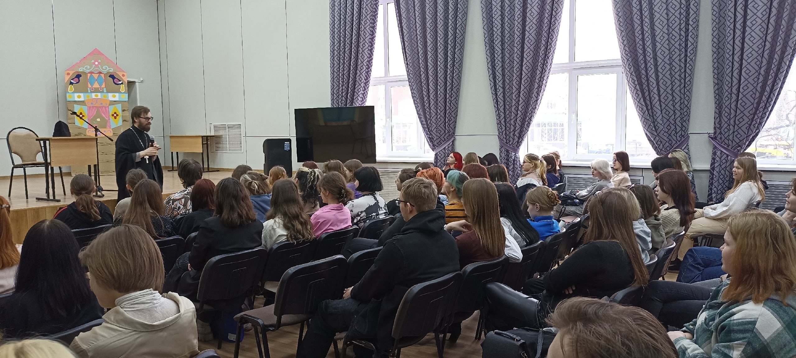 Председатель молодежного епархиального отдела священник Павел Коньков 28 марта встретился со студентами Рязанского технологического колледжа.