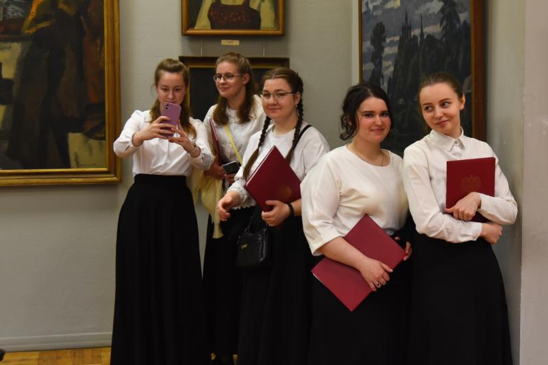 Неслучайно духовные песнопения в этот вечер звучали именно в галерее известного живописца Виктора Ивановича Иванова. Около трети полотен в экспозиции мастера посвящены Воскресенской церкви села Исады. Храм на высоком берегу Оки, воскресная служба, крещение детей — сюжеты картин маститого художника и прекрасное пение молодых исполнителей явили зрителям единую духовную связь времени поколений.