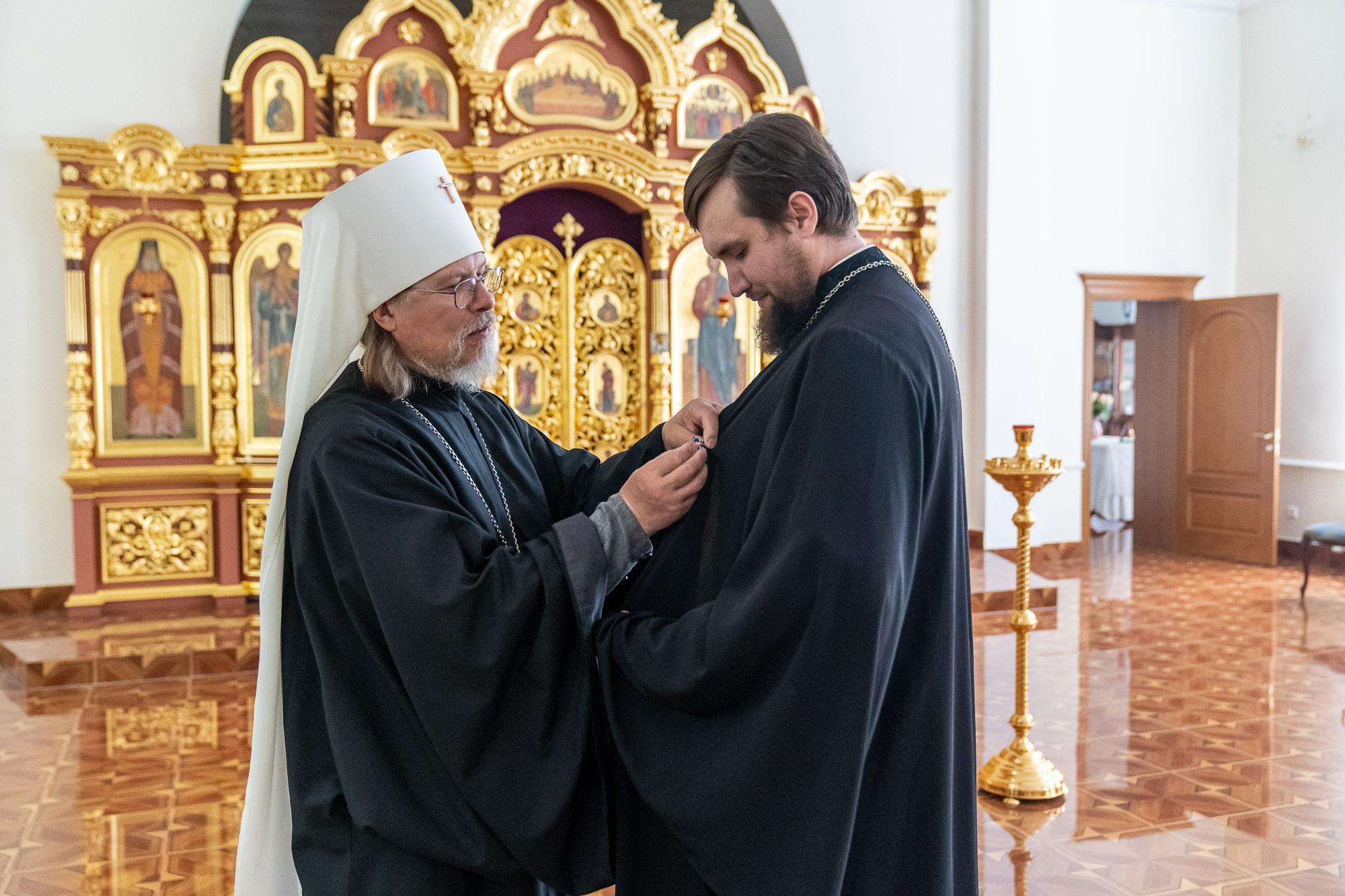 27 июля в Рязанском епархиальном управлении состоялось вручение награды митрополии клирику Сретенского храма г.Рязани иерею Александру Бондареву.