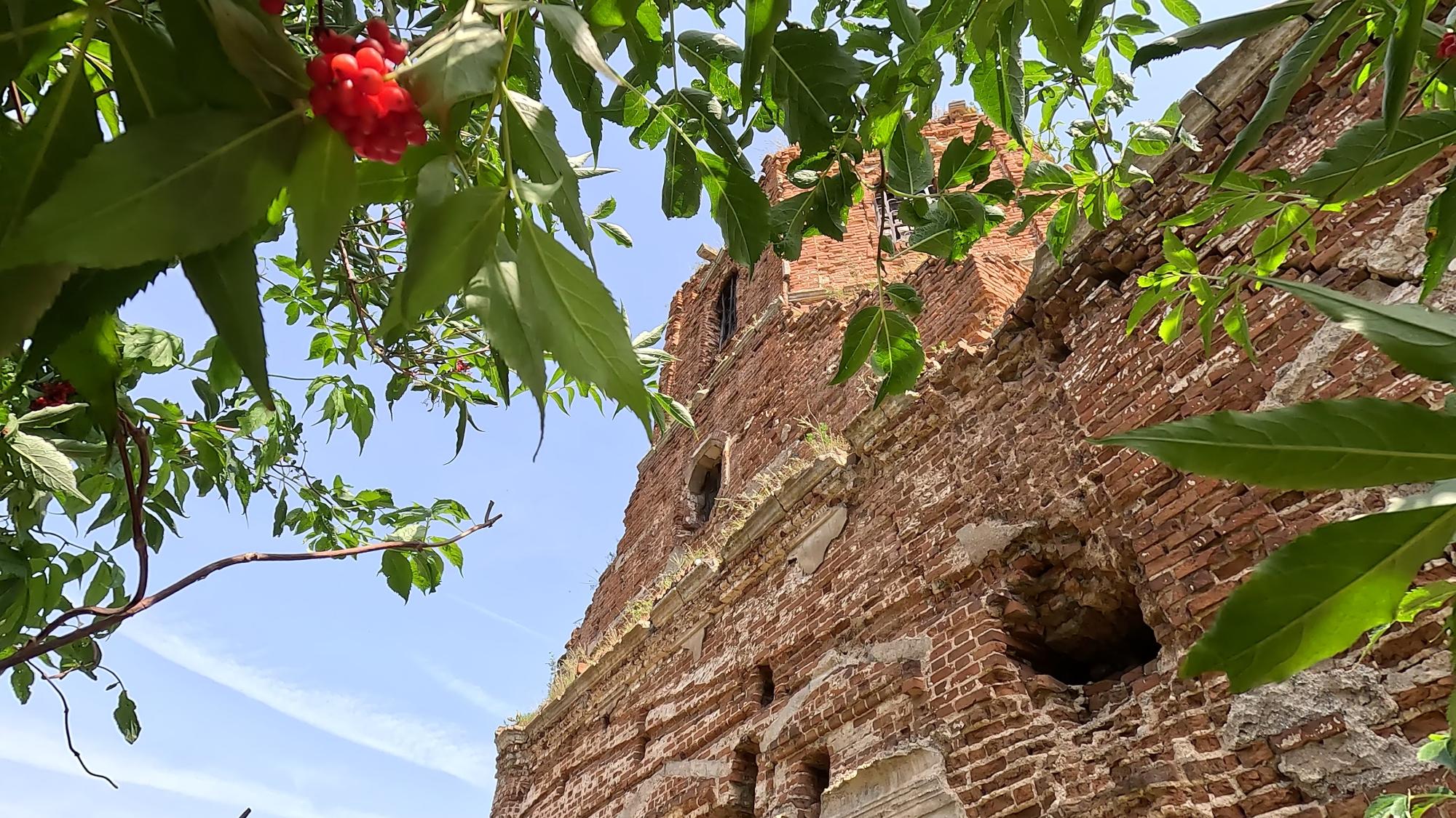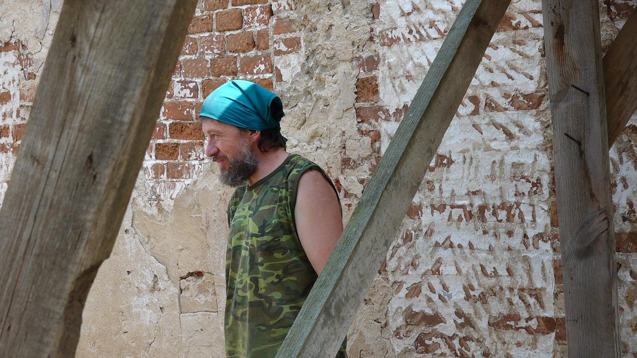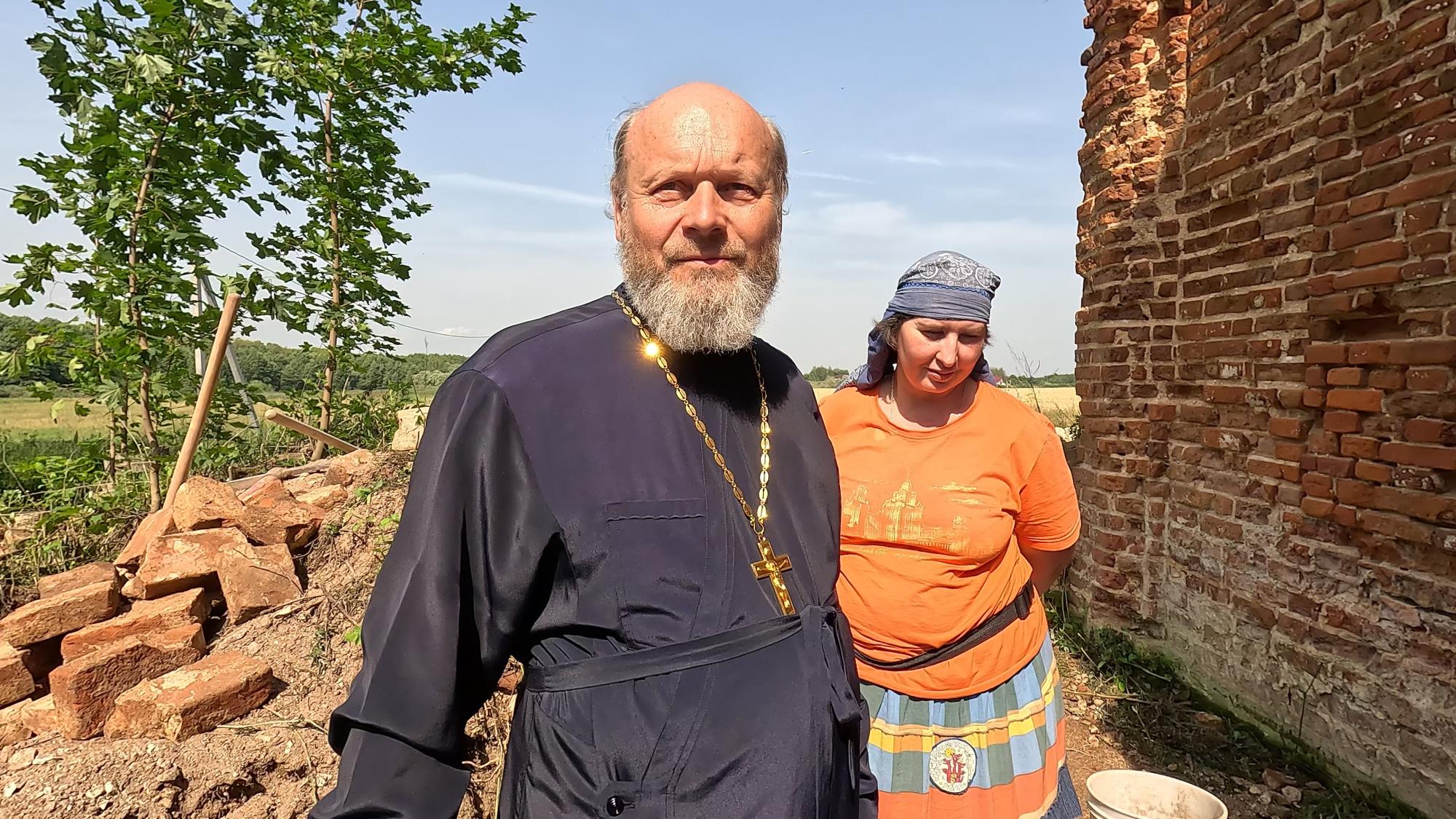 Это уже второй их приезд волонтеров в с. Аннино. В 2019 году члены «Реставроса» занимались южной стороной храма: чтобы стены просыхали, они очистили их от кирпича. В этом году они занимаются северной стороной.