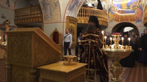Ночное богослужение в монастыре возглавил архимандрит Серафим (Масляев). Насельницы святой обители во главе с игуменией Сергией (Масляевой), а также прихожане, молившиеся за ночной литургией, приобщились Святых Христовых Таин. Архимандрит Серафим обратился к богомольцам с призывом не уклоняться от Евхаристических собраний и как можно чаще принимать участие в богослужениях, в том числе в тех, что совершаются в ночь на Новолетие.