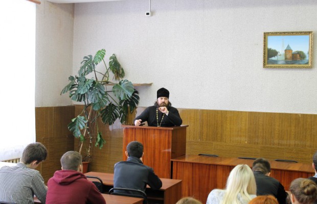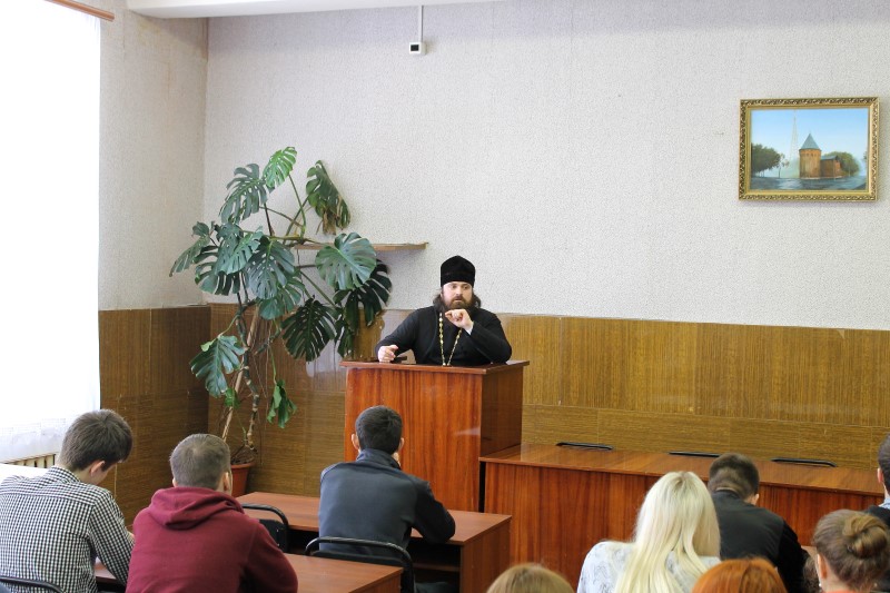 В беседе со священником приняли участие студенты первого-четвертого курсов учебного заведения. Встреча прошла в форме свободной дискуссии: ребята не стеснялись задавать интересующие их вопросы, говорить о том, что действительно важно для них.