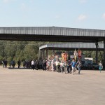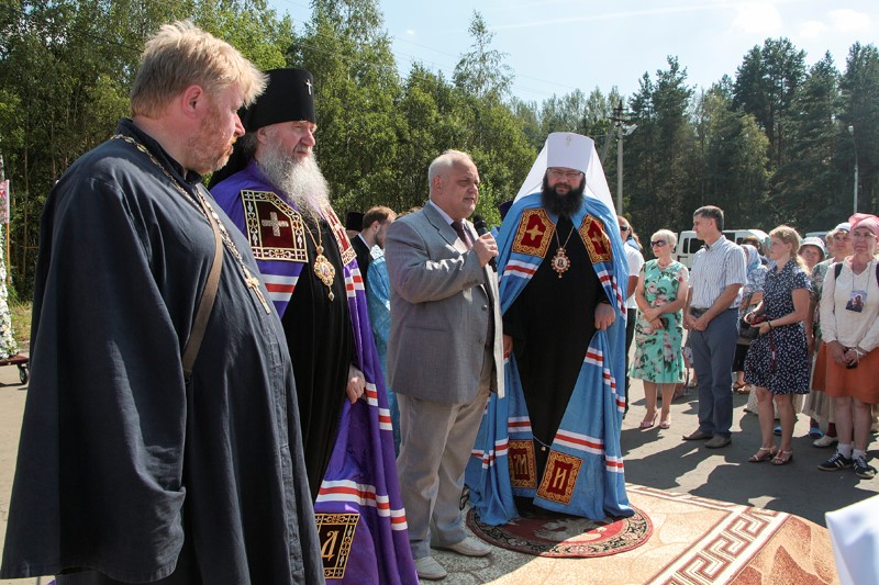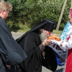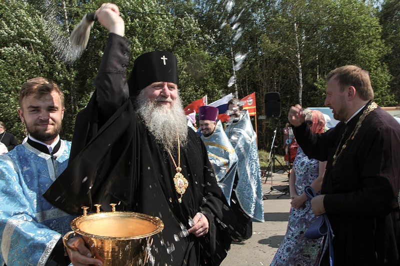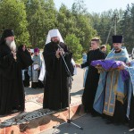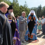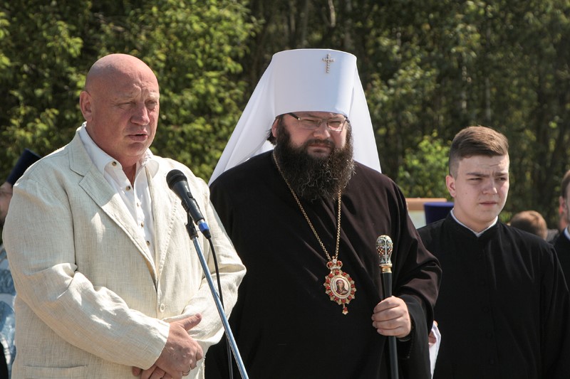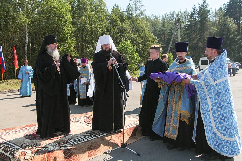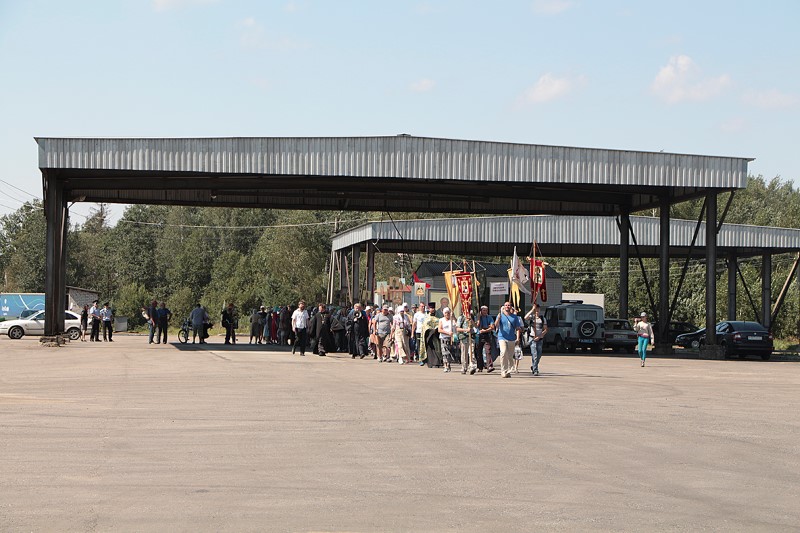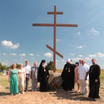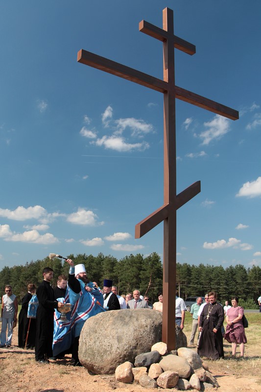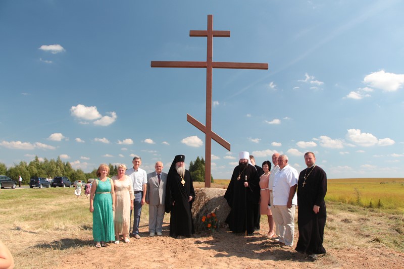 Затем митрополит Исидор и архиепископ Димитрий в сопровождении Юрия Ивашкина, духовенства и представителей администрации проследовали к Поклонному кресту, установленному на границе двух государств, России и Белоруссии, где архипастыри совершили чин освящения святыни.