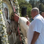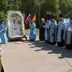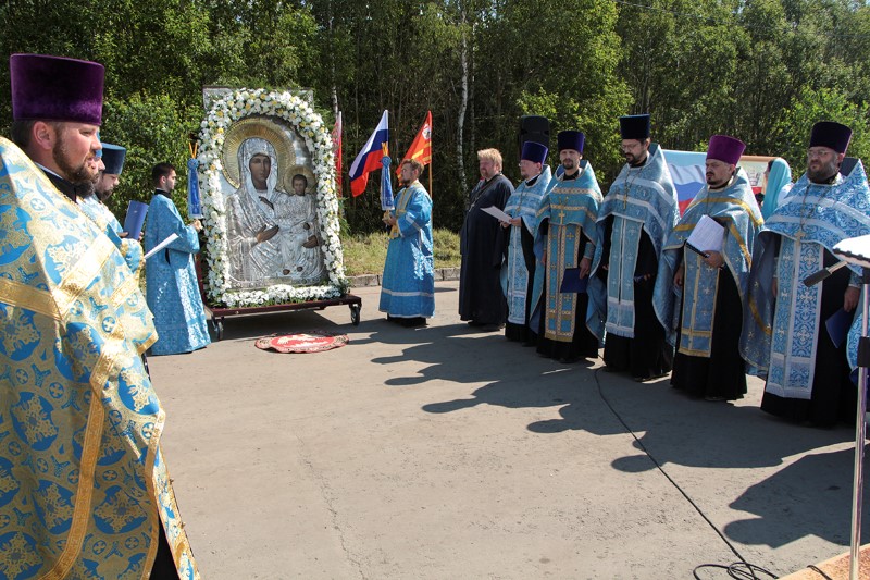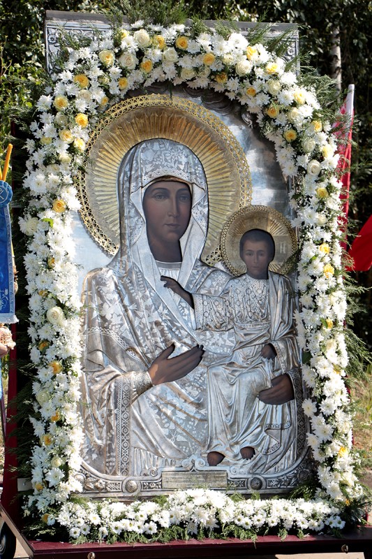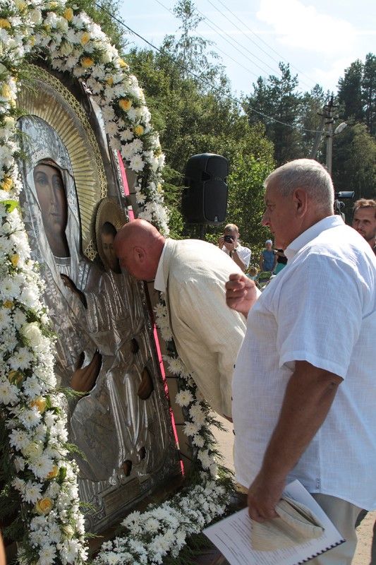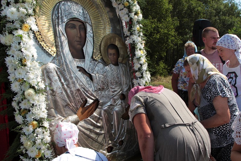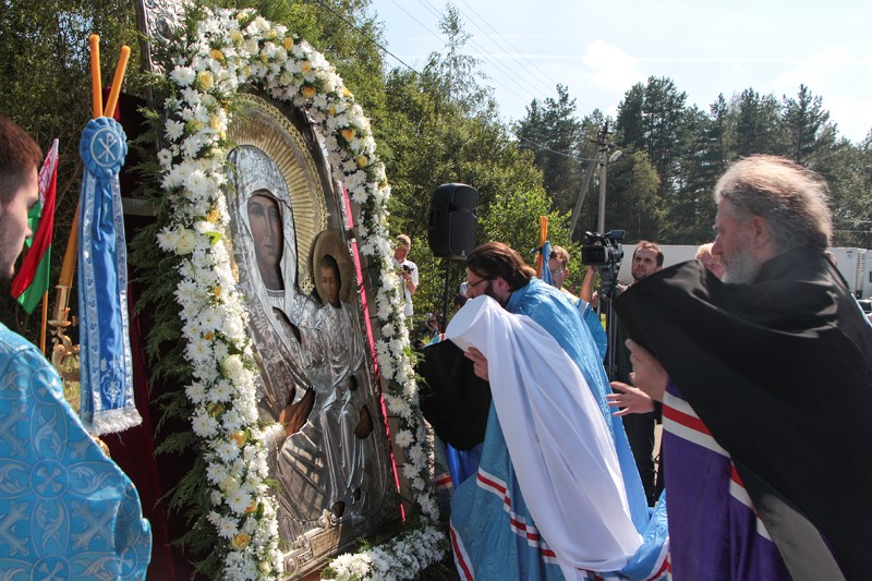 В этом году встреча Одигитриевского крестного хода была ознаменована еще одним радостным событием: на границу двух государств специально для поклонения паломников была доставлена Смоленская икона Божией Матери – образ, с XVII века находившийся в храме Святой Живоначальной Троицы в деревне Микулино. Именно эта икона пребывала в Свято-Успенском кафедральном соборе Смоленска, кода главная святыня Смоленской земли – «Одигитрия» – была на реставрации, и вот теперь святой образ возвращается на место своего постоянного пребывания, делая по дороге остановки – здесь, на границе, и затем в Казанском храме города Рудни.