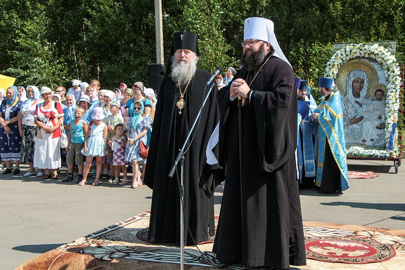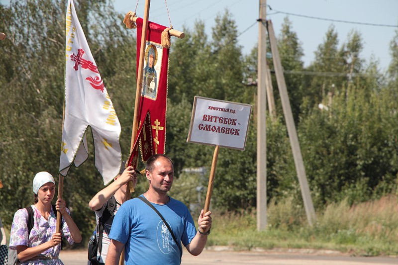 Отрадно отмечать, что этот крестный ход между Витебском и Смоленском подтверждает, что существуют такие многолетние крепкие духовные связи, которые свидетельствуют о единстве Святой Руси. И дай Бог, чтобы каждому из нас, участников этого крестного хода, это нелегкое шествие принесло духовную пользу, духовную поддержку, чтобы Божия Матерь и святые угодники Божии, русские и белорусские, помогали нам в этом крестном ходе и удостоили нас права совершить молебствие наше перед чудотворной иконой Божией Матери Одигитрией, которая является конечно точкой нашего крестного хода».