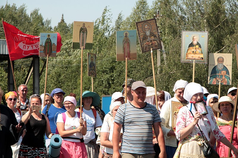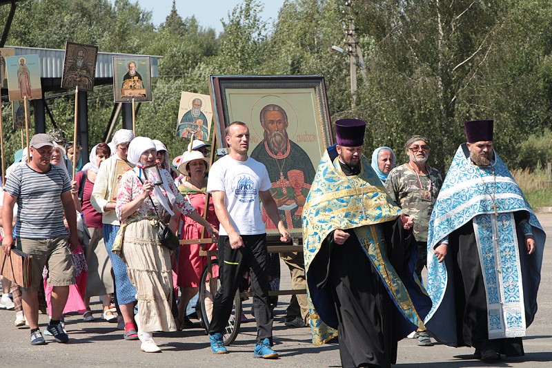 Участники шествия также каждый год приносят с собой чтимую святыню, в этом году это образ святого преподобного Иоанна Кронштадского.