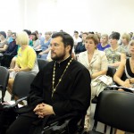 Вторая часть форума была посвящена представлению эффективного опыта социальных институтов по воспитанию подрастающего поколения. С докладом о реализации социально-значимых проектов в региональной системе духовно-нравственного воспитания выступил руководитель епархиального отдела по культуре иерей Валерий Рябоконь.