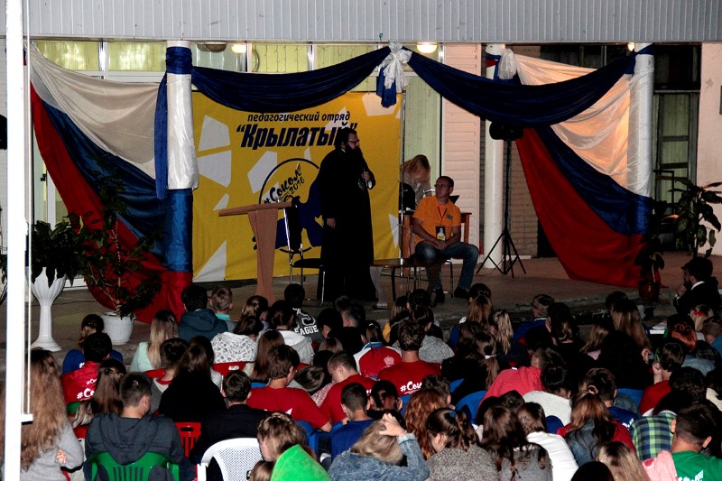Несмотря на насыщенный событиями и, по признанию руководителя сборов, трудный день, более двухсот ребят собрались на площадке у жилого комплекса на встречу с правящим архиереем.