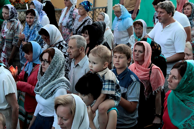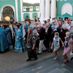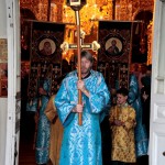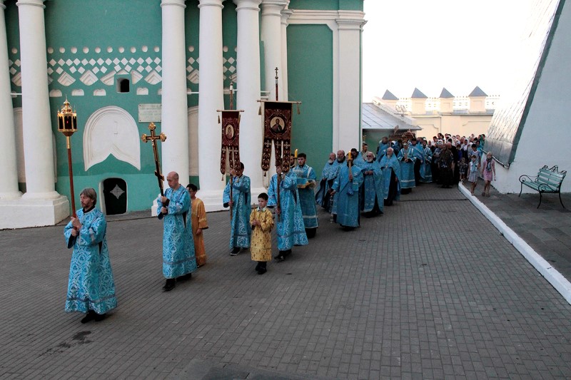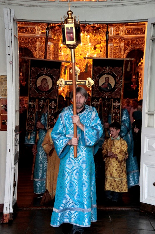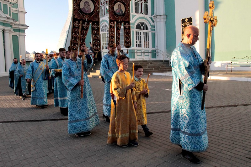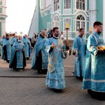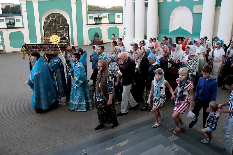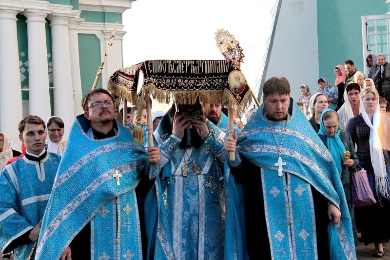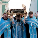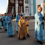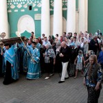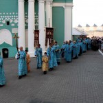 Затем архипастырь, духовенство и миряне под пение погребального Трисвятого совершили крестный ход вокруг собора с Плащаницей Божией Матери, которая потом была внесена в алтарь.
