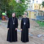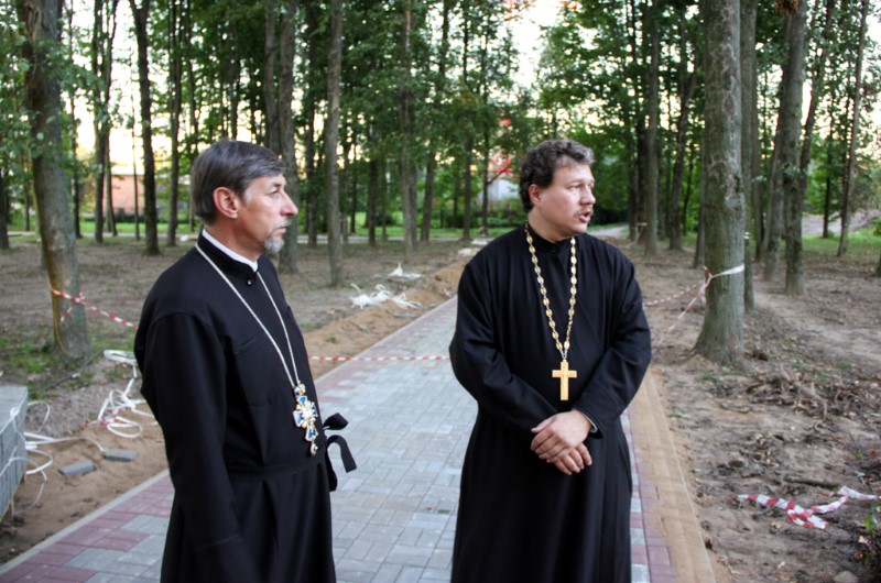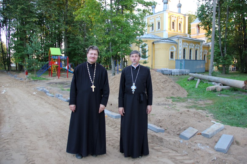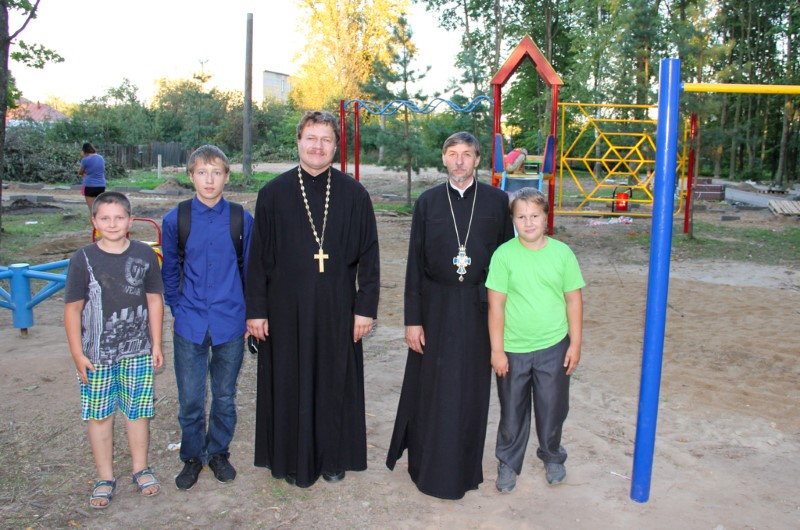 По окончании богослужения прихожане смогли побеседовать с отцом благочинным. Также священники осмотрели парковую зону и новую детскую площадку.