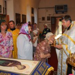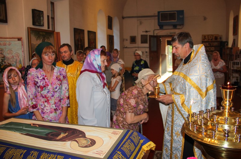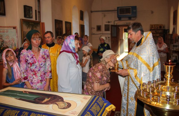 Под пение погребального Трисвятого был совершен крестный ход с плащаницей вокруг храма, после чего прихожане приложились к ней, а отец благочинный помазал каждого елеем.